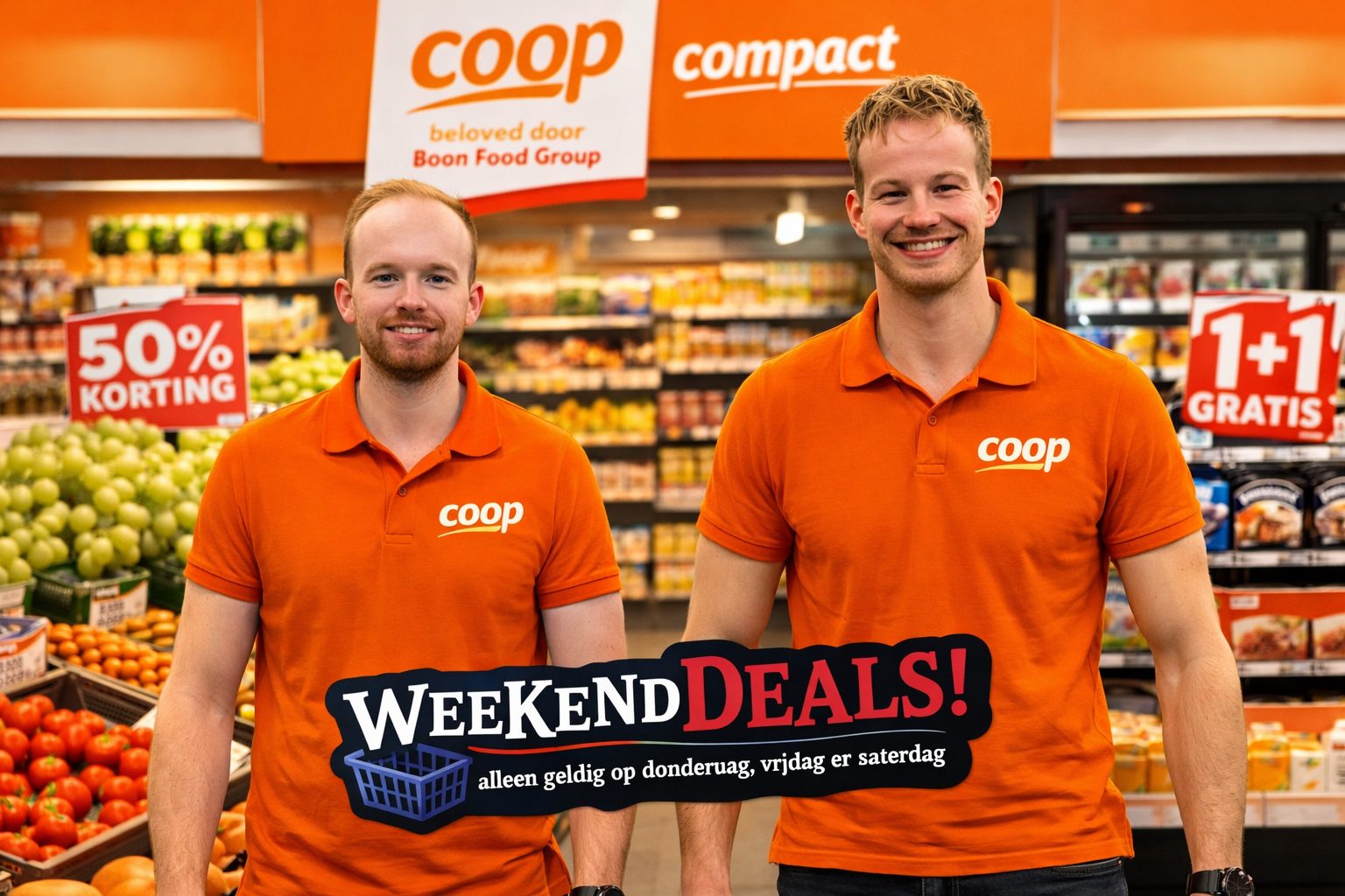 Speciaal voor het weekend pakt Gewoon Coop Compact extra uit met diverse weekenddeals. Deze acties zijn alleen geldig op donderdag, vrijdag en zaterdag, dus wees er snel bij.