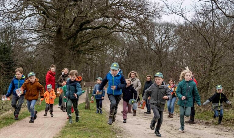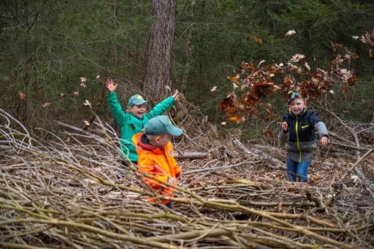 Vol enthousiasme renden de kinderen van paaltje naar paaltje. Geconcentreerd luisteren ze naar de boswachter voor de volgende opdracht. Met rode wangen en vieze handjes gaan ze helemaal op in het maken van nesten, het graven van een hol en het rennen als een haas. De opdracht 1 minuut stil zijn en luistern naar wat je dan hoort, brengt ze weer tot rust.
