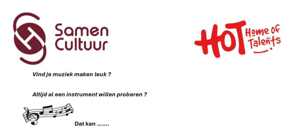 Aansluitend hierop biedt Samen Cultuur samen met Home of Talents vanaf dinsdag 28 oktober voor alle leerlingen van groep 5 t/m 8 de mogelijkheid om muzieklessen te volgen in Hengevelde.
