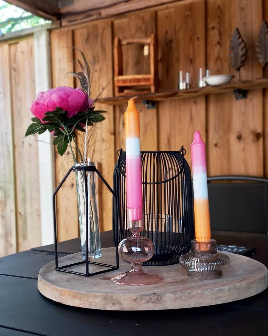 Verder heb ik een luxe lijn met geurolie er in. Daarnaast blikjes, ter grootte van een waxinelichtje, met geur. Verder ook dinerkaarsen en LED kaarsen in dipdye kleuren.