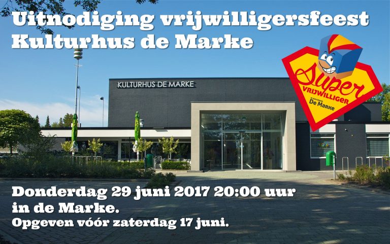 Kulturhus de Marke draait nu al 5 maanden volop als ‘kloppend hart van Hengevelde’.Wij zijn erg tevreden over hoe het nu loopt en dat is alleen maar mogelijk dankzij de inzet van alle super vrijwilligers!We willen deze mijlpaal niet ongemerkt voorbij laten gaan en daarom nodigen we alle vrijwilligers uit om dit met ons te vieren onder het genot van een hapje en een drankje op donderdag 29 juni 2017, om 20:00 uur in Kulturhus de Marke.Een ideale gelegenheid om dan ook de overige vrijwilligers te ontmoeten, samen dit succes te delen en tevens de basis te leggen voor de toekomst.Graag voor zaterdag 17 juni even aanmelden via: [email protected] zodat we hiermee rekening kunnen houden met het eten.