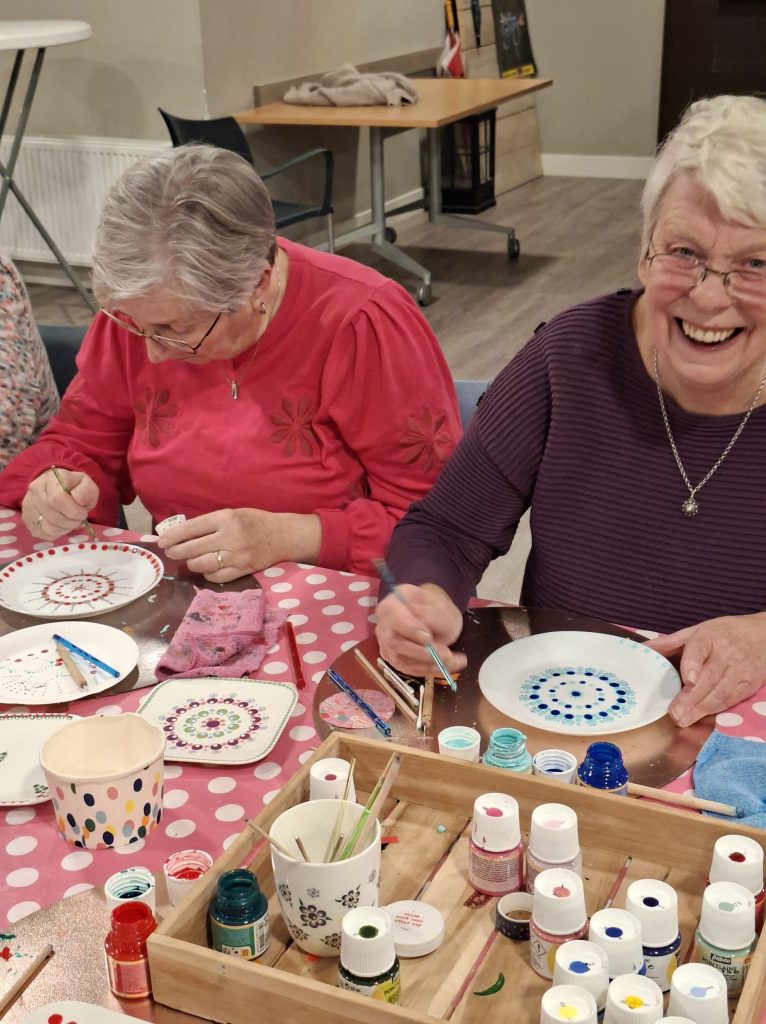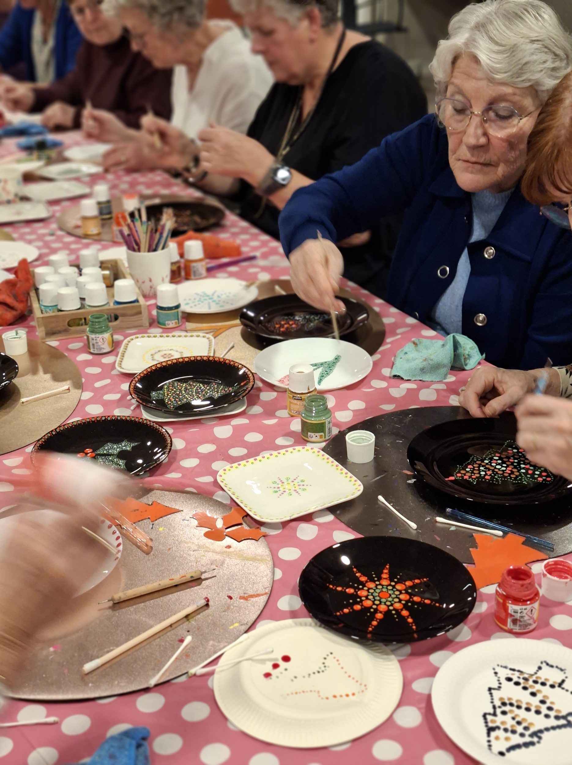 Het was een gezellige en inspirerende avond bij Vrouw Actief Hengevelde (V.A.H.). Onder begeleiding van een ervaren docente leerden de dames alle technieken en handigheidjes om porseleinen voorwerpen te voorzien van mooie, persoonlijke stippen.