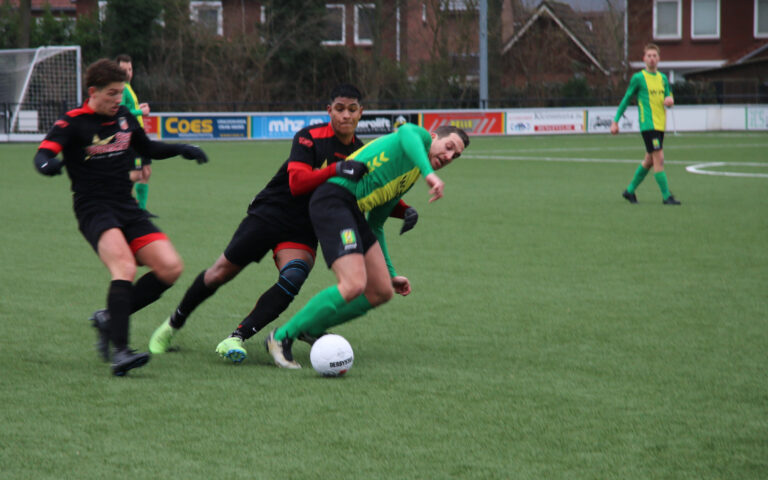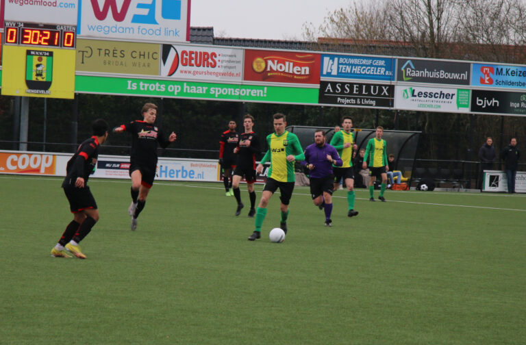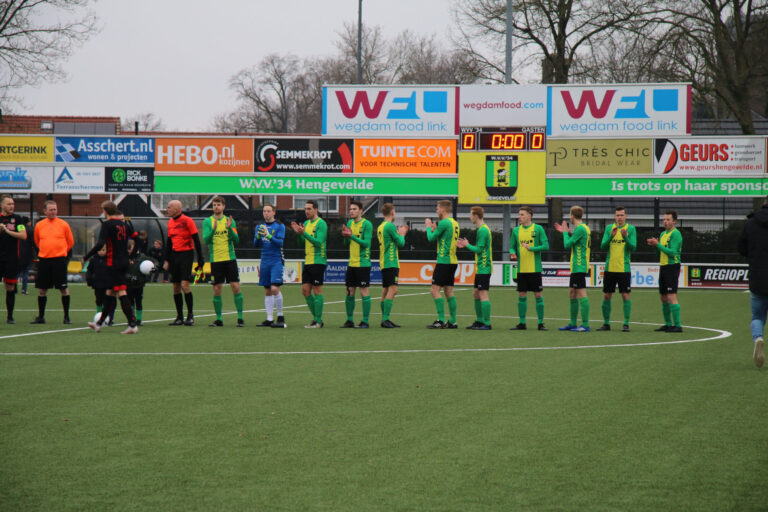 Na rust werd er uit een ander vaatje getapt door W.V.V.’34. De druk ging er vol op en nu waren de heren voorin wél scherp. Maar liefst vijf keer bolde het net. Achtereenvolgens scoorden Robin Rikkert, Randy Smit (kopgoal), Wouter Horstink, Lars Aarnink en Thomas Wegdam. Laatstgenoemde viel goed in en heeft in de winterstop flink getraind, zij het op Curaçao.