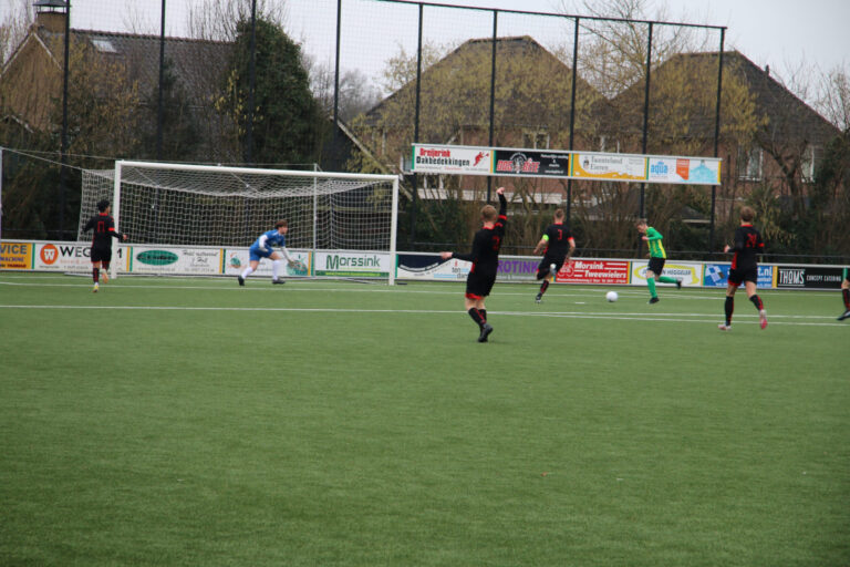 Want dat het 0-0 stond halverwege, had de ploeg van Niki Leferink echt aan zichzelf te danken. Diverse spelers waren erg dicht bij een treffer en vooral Lars Aarnink had de bal na een fraaie actie van de levensgevaarlijke Randy Smit voor het intikken. Maar de Enschedese doelman liet zich van de beste kant zien met een miraculeuze redding.