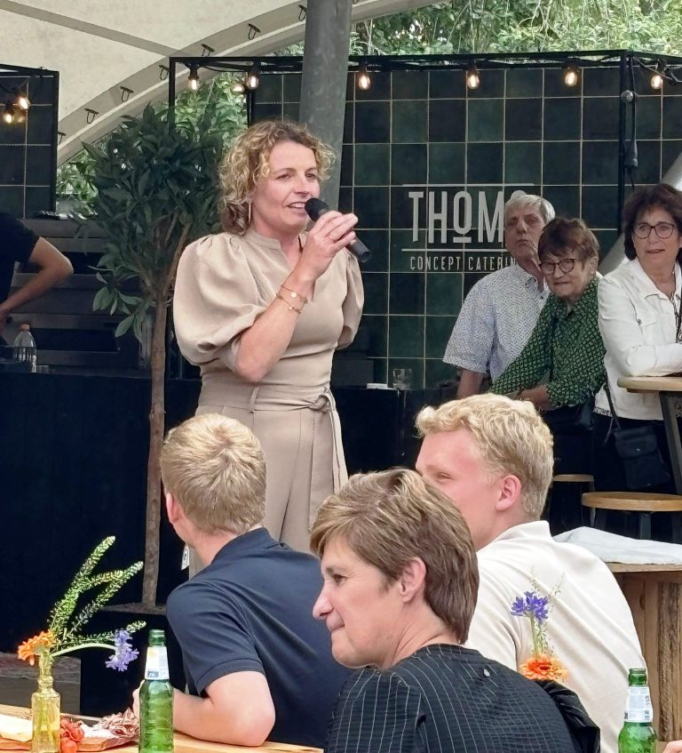 In haar speech vertelt Irma hoe ze in 1997 als 26-jarige, net afgestudeerd en amper 3 jaar aan het werk, “ja” heeft gezegd op de vraag van haar vader (Johan Pierik) om hem op te volgen in het accountantskantoor. Een hele stap, maar een keuze waar ze nooit spijt van heeft gehad. Het heeft haar veel gebracht. Ze kijkt dankbaar terug op de fijne relaties die ze heeft opgebouwd, zowel met collega’s als klanten. Met Ronny Masselink en Jolanda Stegeman heeft ze zelfs de volledige 28 jaar gewerkt. Afscheid nemen na zoveel jaren is dan ook niet makkelijk.