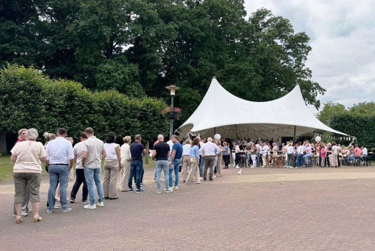 “Wat heeft het team dit ontzettend leuk en goed voor mij georganiseerd. Ik heb enorm genoten!” Dit is de eerste reactie van Irma Pierik na haar afscheid bij Pierik Accountancy. De HET-tent is vrijdagmiddag het prachtige decor voor een zeer geslaagde afscheidsreceptie. Naar schatting hebben zo’n 400 klanten en relaties geproost op het feit dat Irma het roer omgooit en het stokje overdraagt aan Sandra Lesscher. Dankzij Thoms Concept Catering is het ook qua hapjes en drankjes perfect geregeld.