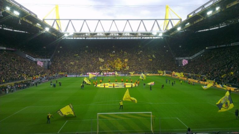 Indrukwekkend was de immense muur van supporters aan de overkant, ook wel de Gelbe Wand genoemd. Hier zitten een kleine 26.000 supporters.