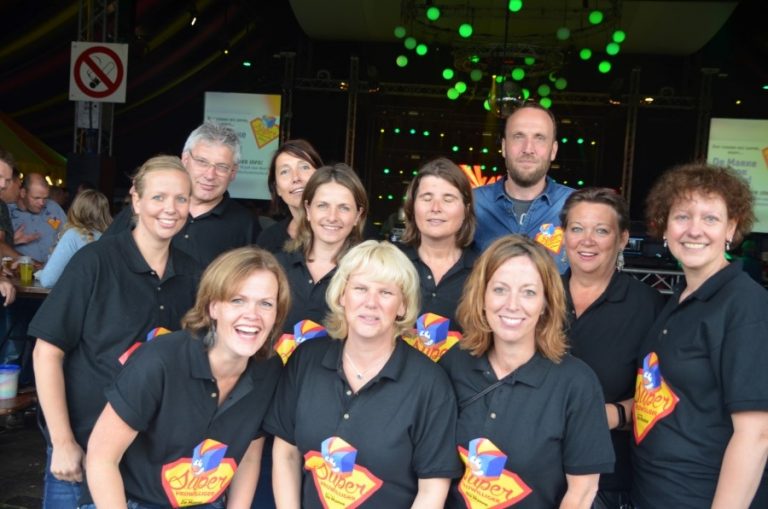 Afgelopen zaterdag is er in de zomerfeesttent door het team op de foto een grote actie geweest om vrijwilligers te werven voor De Marke. Na een introductie over de plannen door voorzitter Frank Slijkhuis gingen de dames en heren in herkenbare T-shirts de tent door om mensen persoonlijk te benaderen. Iedereen die zich aanmeldde kreeg direct een sticker opgeplakt met de bedanktekst “Super dat je vrijwilliger bent voor De Marke”. In totaal hebben maar liefst 154 personen toegezegd een bijdrage te leveren aan het plan om De Marke vanaf 1 januari 2017 geheel met vrijwilligers te organiseren. Er zijn een aantal bijzondere ideeën naar voren gekomen, Frank Slijkhuis:
