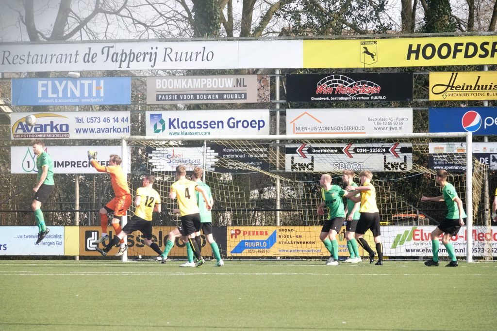 De intentie van Ruurlo leek van meet af aan helder: spelen in een 4-4-2-formatie en vanuit een compacte organisatie snel omschakelen. Dat werd al in de 9e minuut duidelijk. Keeper Tom Pierik wist eerst redding te brengen, waarna de leidsman een handsbal constateerde en naar de stip wees. Tom keerde echter ook de strafschop.