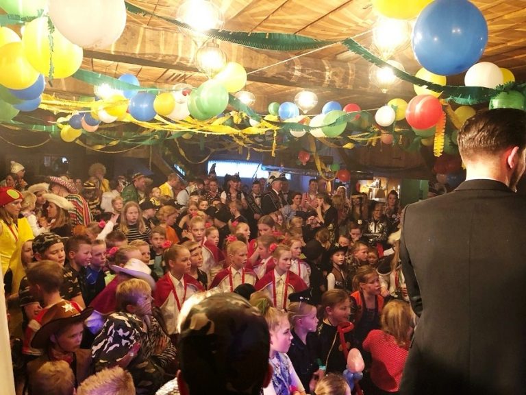 Zaal Varenbrink zat vol met ouders, kinderen, leden van de carnaval vereniging de Höftemennekes en natuurlijk de vriendengroep van prins Roy! Na de optocht volgden de winnaars van de playback voorronde van afgelopen vrijdag op de Petrusschool, groep 4 heeft playbackshow gewonnen! Voorzitter Bart-jan van Hecke:” Het Kidscafé was in ieder geval weer groot succes. Het leuke is dat we nu al geluiden horen over ouders en groepen die ook een wagen willen bouwen volgend jaar, ofwel het carnavalsvirus begint zich onder de jonge jeugd en ouders te verspreiden!”