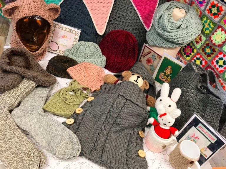 dassen en sjaals, omslagdoeken, truien, baby cadeautjes en nog veel veel meer wordt verkocht.