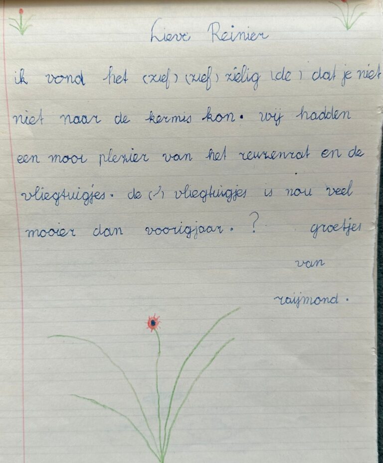‘Toen ik een jaar of elf was, mocht ik bij voetbal, maar gevoel voor de bal had ik nooit ontwikkeld. Grote successen heb ik bij WVV dan ook nooit gehad, althans ik kan ze mij niet meer herinneren. Samen met jou, Han ter Woorst, Dennis Bloemen, Martin Raanhuis en Norbert Kuipers speelden we paaltjesvoetbal op de parkeerplaats achter café De Witte, nu Bistro De Kolenbrander. Het ging me nog redelijk af.
