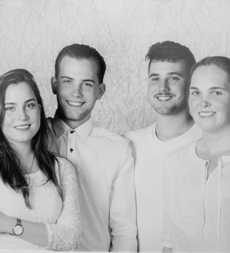 In 1998 en 2000 hebben we onze kinderen mogen krijgen. Twee tweelingen: Joep en Jet en Piet en Nel.”