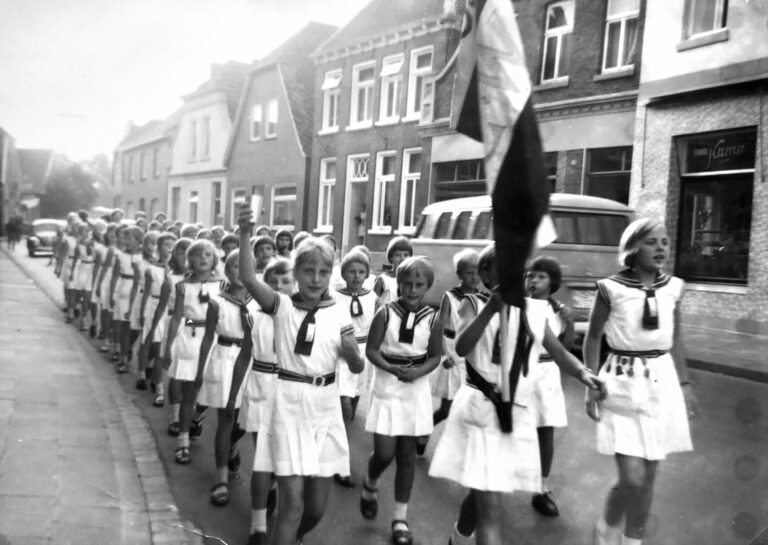 ‘Eerst aan de Schoolweg. Ik was een vrij rustig, ijverig kind. Voor vlijt had ik altijd een hoog cijfer. Mijn leukste herinnering? Ik speelde veel bij Ria Heijmer, die naast de school woonde. In het weekend gingen via een raampje, dat wij open konden krijgen, stiekem de school in. Dat hebben we regelmatig gedaan. Was heel ondeugend van ons. Het was een leuke tijd. We waren onder meer lid van WSV, de wandelsportvereniging.