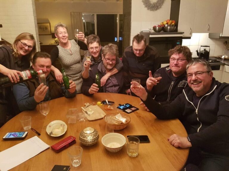 “Dat is een goeie. Wat ik nog wel kwijt wil is: Ik ben niet alleen uit Hengevelde weggegaan. Bertie is er een belangrijk onderdeel van dat het zo gelopen is. Daar stond mijn hele gezin toen achter, hij moest en zou bij ons blijven zolang het kon. Op het moment dat wij kinderen zouden krijgen zou hij al bij ons moeten wonen, dan konden onze kinderen daar aan wennen. Door het vroege overlijden van mijn vader liep dat anders, mijn moeder wilde niet alleen blijven, dus is Bertie nog jaren bij haar gebleven. We woonden naast elkaar en namen steeds meer van haar over tot haar overlijden tien jaar geleden. Daarna kwam hij bij ons in. Al met al zijn de kinderen er wel mee opgegroeid, omdat we wel naast elkaar woonden. Dat klikte geweldig. Drie jaar geleden zijn we naar Delden verhuisd, toekomstbestendiger laten we maar zeggen. We hebben nu alles beneden.”