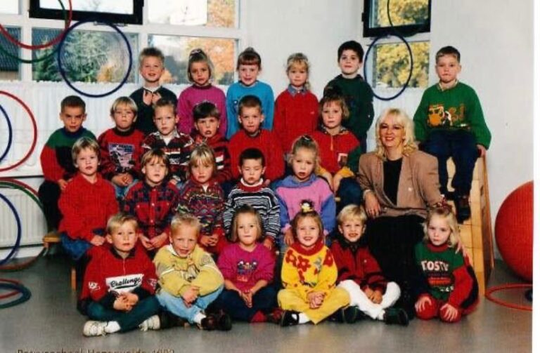 ‘We woonden dichtbij de school. Bij wijze van spreken zou ik nog van huis kunnen gaan zodra de bel ging. We liepen altijd binnendoor over het oprit van onze lieve buren Tonnie en Hermien Broshuis. De basisschool was een ontzettend leuke tijd, met een leuke groep, alhoewel ik denk dat het voor de leerkrachten niet altijd leuk was om ons les te geven. We waren nogal ‘aanwezig.’ Ik herinner me echt veel situaties nog. Lachen achter het aardrijkskundeboek, terwijl de ander voor straf voor het bord geplaatst werd, het ‘verliefd’ kijken naar de mannelijke stagiair bij juf Elly van der Kooi, omdat we wisten dat hij dan rood zou aanlopen. De keer dat meneer Henny zo boos op ons was, omdat we er een potje van maakten met de musical. Dat hij boos wegliep en wij toen zelf maar spontaan opnieuw begonnen met zingen. Buiten schooltijd speelde ik op de basisschool veel met Muriël Groothold. Op de zolder van Annet werd de Nintendo verschillende keren aangeslingerd. Ook speelde ik veel met Denise Leferink, Anouk Semmekrot, Marcela Spekreijse, Marlou Arkink, Nienke Assink en Esther Keuper.’