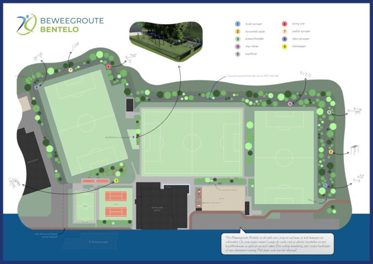 Bentelo gaat aan de slag met de zogehten ‘Beweegroute’. De Beweegroute Bentelo wordt dé plek voor jong en oud waar je kunt bewegen en ontmoeten. Op jouw eigen manier! Langs de route vind je allerlei toestellen en een krachthonk waar je gebruik van kunt maken. Een rustige wandeling, een rondje hardlopen of een intensieve training. Met deze route kan het allemaal!