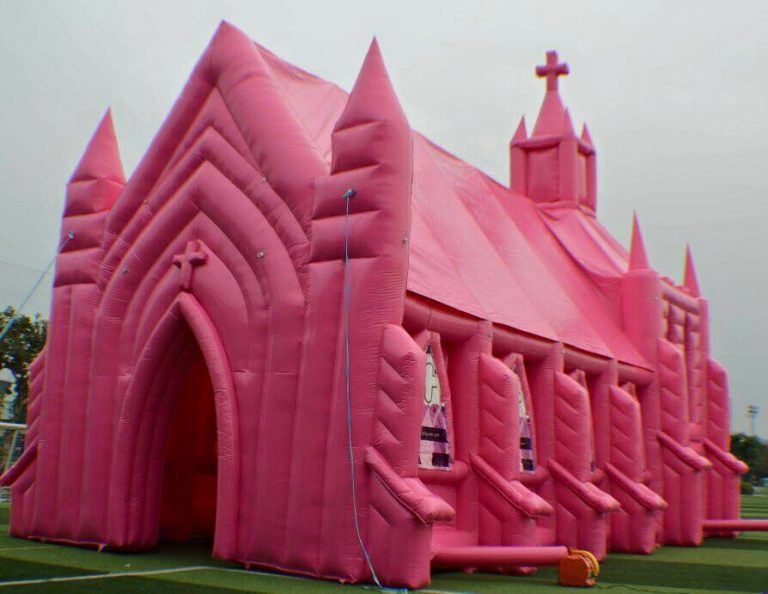 Het Nieuwjaarsfeest in Bentelo heeft dit jaar een bijzondere 'locatie'. Het wordt namelijk gehouden in een zogeheten opblaaskerk. Het feest wordt georganiseerd door een groepje jongeren uit Bentelo. Jacques Wilmink, één van de organisatoren hierover: "We merken nog steeds dat er vanuit Bentelo en omstreken behoefte is aan een plek in de buurt waar mensen nieuwjaarsnacht samen kunnen komen en een drankje met elkaar kunnen drinken. Het feest wordt nu al een heel aantal jaren georganiseerd en we proberen elk jaar iets te veranderen en verbeteren. Toen we tijdens de voorbereidingen aan het brainstormen waren, kregen we van een aantal goed-meedenkende dames de tip om eens te kijken naar deze tent. We hebben foto's en filmpjes van deze tent bekeken en waren gelijk heel enthousiast. Het is een keer iets anders dan een witte tent en op alle foto's en filmpjes die we hebben bekeken was de sfeer geweldig. We willen heel graag een leuk feest organiseren voor voornamelijk de mensen uit Bentelo, Hengevelde, Delden en Beckum. De tent is zoals gezegd een opblaaskerk, een roze tent in de vorm van een kerk.