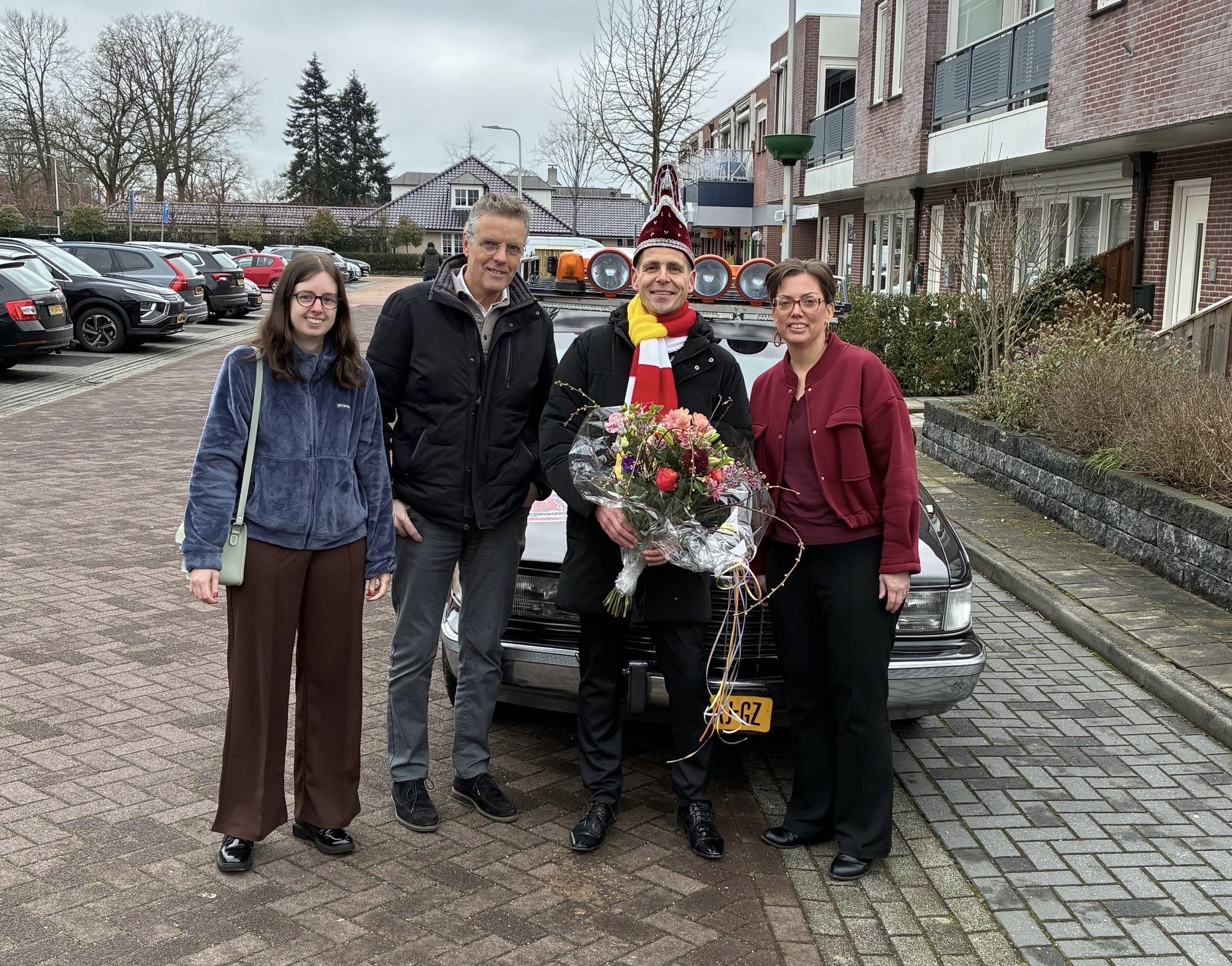 Het eerste bezoek vond plaats bij Wijngaard Hof van Twente in Bentelo, waar Roelof Visscher werd verrast. Roelof is voorzitter van Dorpsraad Bentelo en zet zich daar met enorme betrokkenheid in voor nieuwe initiatieven in het dorp, onder andere op het gebied van woningbouw. Zo is hij de spil in de organisatie van informatieavonden over de woningbouwplannen langs de beek en op de zomerfeestweide. Daarnaast maakte Roelof zich de afgelopen jaren ook verdienstelijk als lid van de locatieraad Bentelo van de Heilige Geestparochie. Een waardevolle vrijwilliger die met zijn inzet en enthousiasme echt het verschil maakt voor Bentelo.