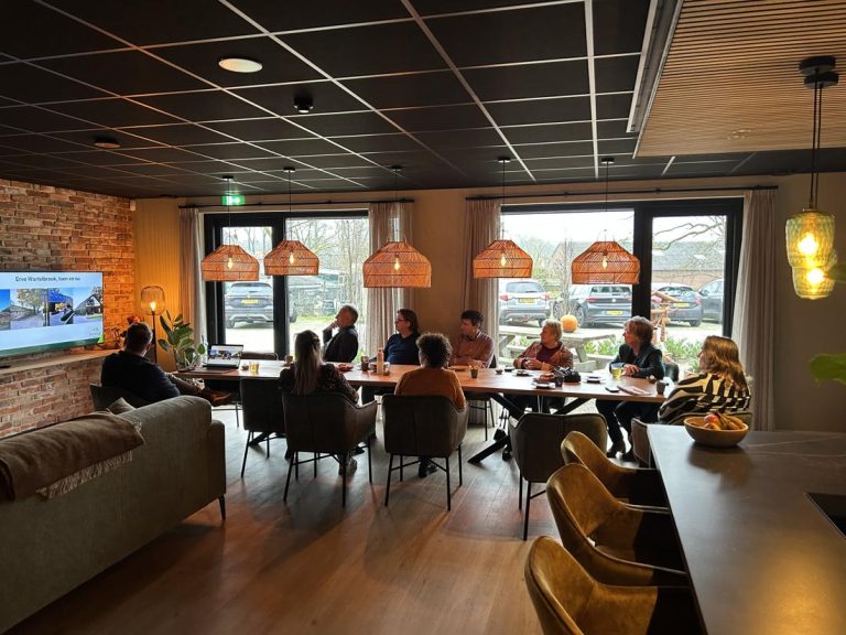 Het college was niet alleen onder de indruk van de inhoudelijke aanpak, maar ook van de unieke locatie. Op de ouderlijke grond van Tom heeft een oud boerenbedrijf, dankzij slimme regelingen, een transformatie ondergaan tot een stijlvol kantoorpand met woning en recreatiemogelijkheden. Het geheel vormt een kleinschalig, landschappelijk ingepast landgoed waar binnenkort ook bos wordt aangeplant.