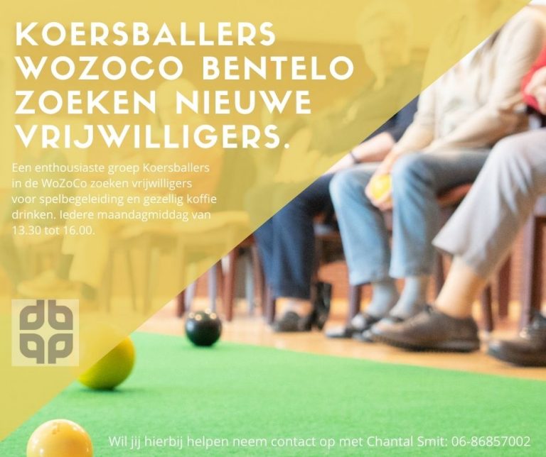 Een enthousiaste groep Koersballers in de WoZoCo is op zoek naar vrijwilligers voor spelbegeleiding en gezellig koffie drinken. Het gaat om een activiteit op maandagmiddag van 13.30 tot 16.00 uur. Wil je hierbij helpen, bel of app dan even met Chantal Smit: 06-86857002.