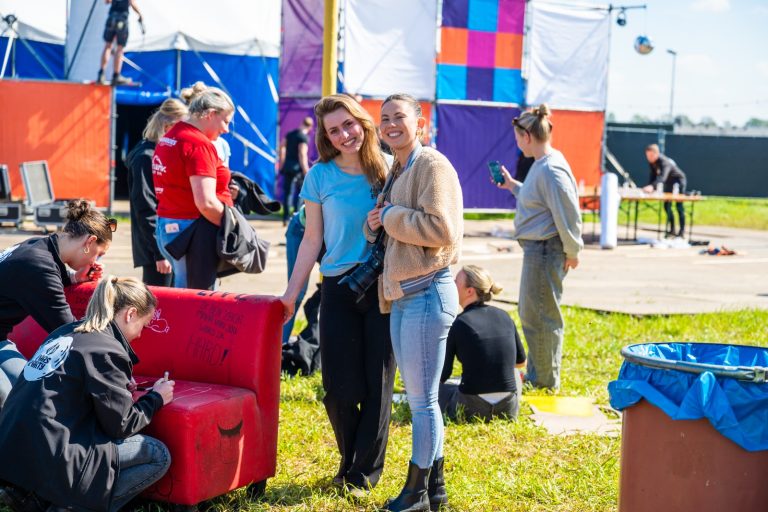 “Vanaf september zitten de eerste vergaderingen er al in. Een hoofdbestuur en zo’n twaalf commissies denk aan techniek, horeca, veiligheid en tentmanagers komen dan maandelijks samen om het evenement in goede banen te leiden. Maar vanaf het eerste weekend van april is het volle bak actie: op twee vrijdagen, twee zaterdagen en zelfs door de weeks in de avonden, wordt er gebouwd aan het festivalterrein. De eerste zaterdag zo’n 100 man aan het werk, de tweede meer dan 250.