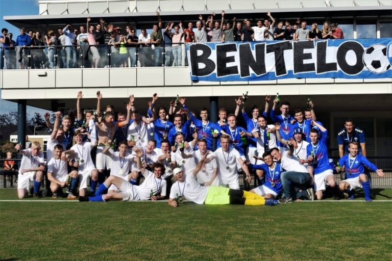 Hoe is het mogelijk! vv Bentelo heeft het zo ‘weten te plannen’ dat zowel Jo19-1 als JO19-2 in de laatste wedstrijd thuis kampioen kunnen worden. JO19 1 zelfs in de eerste klasse! En laat dit nu ook nog eens allemaal ‘volgens planning’ zijn verlopen! Onder het toeziend oog van het in groten getale opgekomen publiek wist om 14.30 JO19-2 de titel binnen te halen met een 7-2 overwinning op Erix. JO19-1 speelde om 16.00 uur en had aan een 0-0 genoeg tegen FC Eibergen! Tot aan het einde van de wedstrijd was de spanning te snijden, dus was de ontlading des te groter! De champagne kon van de kurk! Super voor beide teams van Bentelo om elkaar aan te moedigen en uiteindelijk mooi samen het kampioenschap te vieren, en dat is gebeurd! ZIE DIT FILMPJE