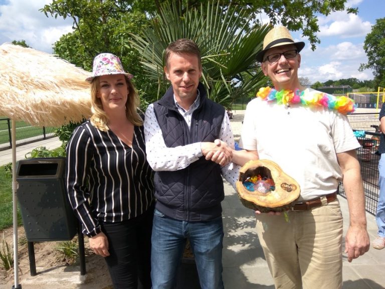 Raab Karcher uit Goor heeft de Holtbar, het rondreizend compliment over duurzaamheid, doorgegeven aan Stichting De Pol uit Bentelo voor hun inzet om het sport- en cultuurgebouw verder te verduurzamen. De overhandiging vond plaats tijdens de feestelijke opening van het nieuwe beachveld en de jeu de boules banen op zaterdag 20 mei. De Holtbar is bedoeld als compliment voor mensen en organisaties die zich inzetten voor duurzaamheid. De huidige eigenaar van de Holtbar beslist zelf naar wie de Holtbar doorreist. Rob Averdijk van Raab Karcher ontdekte via de Duurzaamheidsprijs Hof van Twente hoeveel stichting De Pol al doet, maar vooral ook nog wíl doen om verder te verduurzamen. “Dat verdient een compliment én een aanmoeding”, aldus Rob Averdijk.