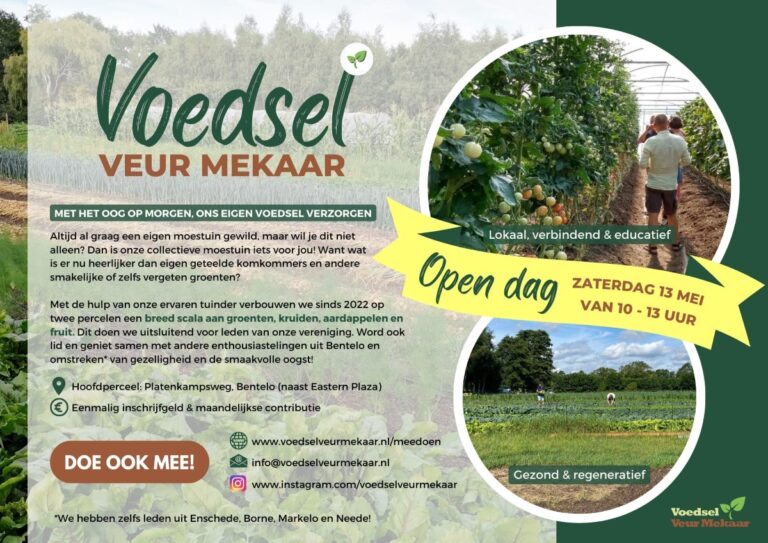 Altijd al een moestuin gewild maar niet alleen? Kom deze zaterdag naar Bentelo tussen 10.00 en 13.00 uur, naast Eastern Plaza. Voedsel Veur Mekaar is een burgerinitiatief van en voor streekgenoten! Xander Borre: