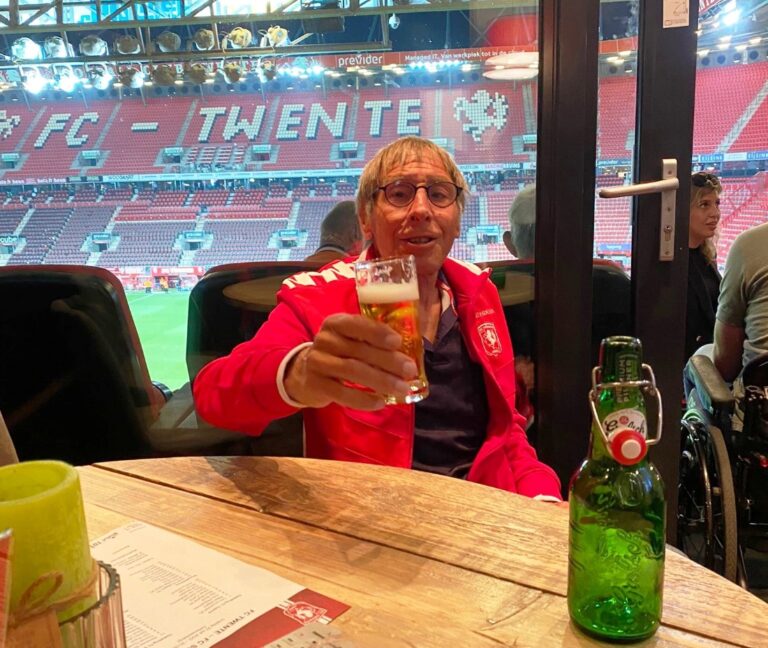 Wat hebben we de laatste jaren wel met hem genoten. Bij ons mee in het busje naar zijn FC Twente, waar hij steevast een plek had naast zijn Enschedese vrienden Linda en Gerwin. Hij is zelfs op hun bruiloft geweest in zijn Grolsch Veste!