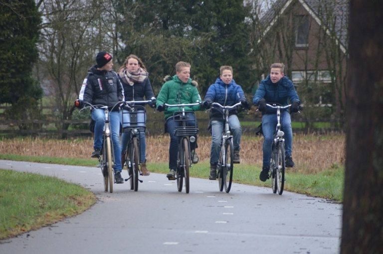 Maandag 22 februari 2016. Een troep fietsende scholieren werkt zich tegen het striemende water in naar school richting Haaksbergen en Delden. Een aardig ritje voor de boeg. Ze zijn er bijna, tot op de draad doorweekt. Opvallend is dat. Nu heb je twee opties: óf dat totaal onaantrekkelijke, oversized en vooral niet-rekening-met-je-figuur-houdende regenpak aan óf ….Bijna nooit meer zie je een jongmens met een regenpak, een poncho of andere passende kleding in geval van nat weer. Want zo’n regenpak, weet je hoe ontzettend stom dat staat? Je fietst er volledig mee voor joker. Doe normaal! Telkens als ik het zie probeer ik het te begrijpen. Ja, ik ben zelf ook 15-17 geweest. Ja, ook toen was het stom, maar het was nog stommer om doorweekt op school te komen en de hele dag te soppen en te zompen. Wat helemaal niet helpt, zijn mijn verhalen over vroeger. Ik moest in mijn middelbare schooltijd ruim een half uur naar school fietsen, en het kon me echt niks schelen hoe ik eruitzag, als ik maar dróóg bleef. En dus fietste ik met twee plastic zakken van de Spar om mijn schoenen, vastgebonden met dik postelastiek. Was ik mijn regenpak vergeten, dan knipte ik drie gaten in een vuilniszak.