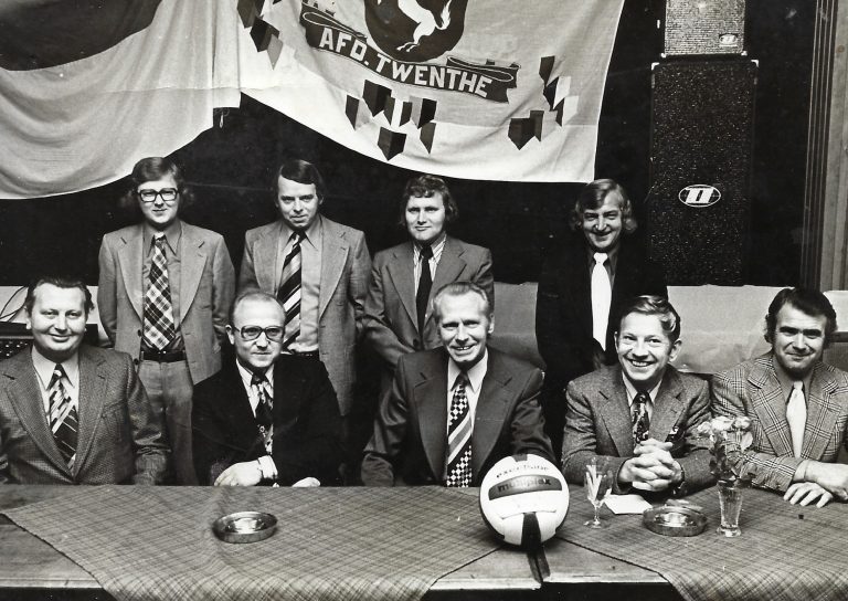 (foto: Het bestuur van WVV’34 in de jaren zeventig met zittend vlnr Jan Stegeman, Gerhard Screever, Henk Waanders, Ab Vonkeman, Antoon Hafkamp. Staand: Johan Hemel, Jan Pelle, Hennie Wegdam en Hennie Varenbrink)