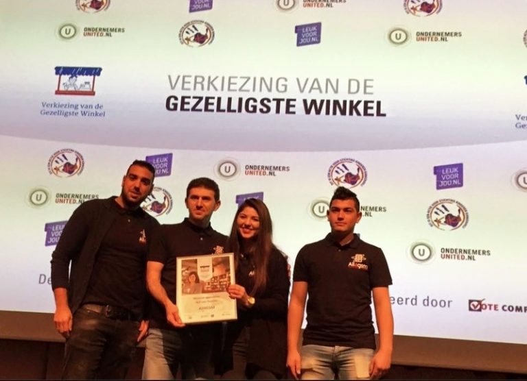 De nieuwe All4GSM-winkel in het Goorse centrum is gekozen tot ‘Gezelligste winkel in de Hof van Twente’. De telefoonshop wist de meeste stemmen te vergaren in Goor en omgeving en bleef daarmee Primera De Bandijk en het nieuwe Lekker Leuk voor. DA van Zwoll kreeg het hoogste rapportcijfer. All4GSM werd dus over all-winnaar (combinatie stemmen en rapportcijfer) en was de nummer zes van de provincie Overijssel. Eigenaar Adel Ali ging vanmorgen met zijn medewerkers naar Oegstgeest om in het CORPUS Congress Centre de prijs daar in ontvangst te nemen. De gezelligste winkel van Nederland werd Bebo vloeren uit Vriezenveen.