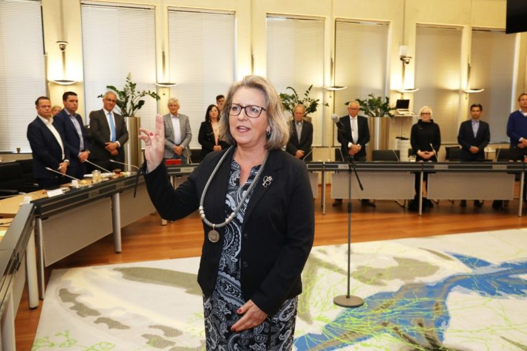 Burgemeester Ellen Nauta is vanavond opnieuw benoemd als burgemeester van gemeente Hof van Twente. Andries Heidema, commissaris van de Koning van de provincie Overijssel, beëdigde de burgemeester tijdens de gemeenteraadsvergadering op dinsdag 7 mei. Naast de gemeenteraad waren ook familie en andere belangstellenden aanwezig. Burgemeester Ellen Nauta sprak dank uit voor het vertrouwen: “Mag ik u bedanken voor het feit dat u het mogelijk maakt dat ik de burgemeester kan zijn die ik graag wil zijn. Dat u het vertrouwen geeft om samen met u verder te gaan.