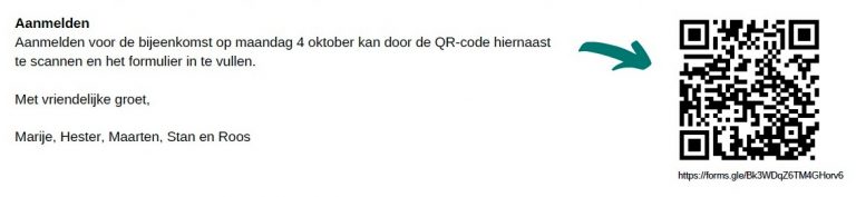 Aanmelden kan via https://forms.gle/Bk3WDqZ6TM4GHorv6 of [email protected]