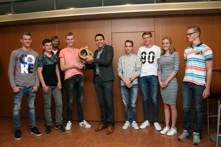 De Holtbar werd op woensdag 5 oktober uitgereikt tijdens een speciale bijeenkomst. Wethouder Wim Meulenkamp overhandigde de Holtbar aan Timo Haafkes, die de prijs in ontvangst nam namens het hele team. Het team heeft een boot gebouwd op zonne-energie en meegedaan met de Young Solar Challenge. Bij de bouw van de boot kwamen alle aspecten aan de orde, zowel techniek als organisatie en sponsoring. Het team eindigde op de zesde plaats in een veld met 15 deelnemers. Timo: “Wij kijken allemaal heel leuk terug op dit project. We hebben vooral veel geleerd over duurzaamheid, door het bouwen van de boot maar ook door de workshops die we hebben gehad.”