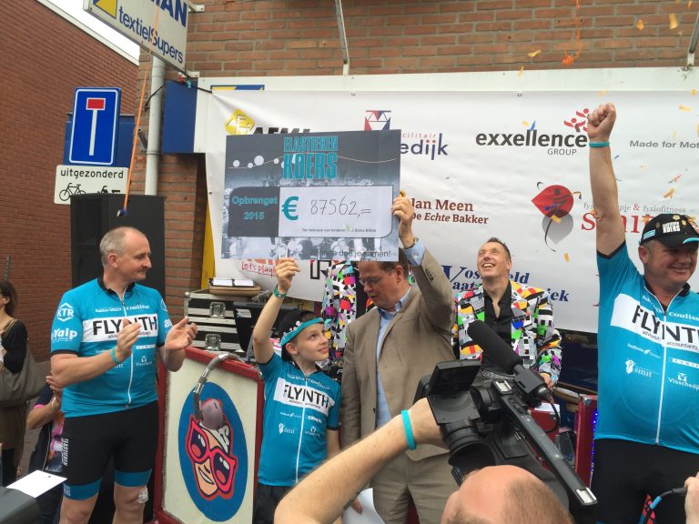 De opbrengst wordt alleen besteed aan tastbare zaken en komt dit jaar ten goede aan de stichting BOSK, Groot Klimmendaal, Afdeling Spina Bifida ziekenhuis in Enschede en Maarten ter Hofte. Maarten komt uit de Hof van Twente, heeft Spina Bifida en was dit jaar ‘vaandeldrager’ van de Elastiekenkoers. Vorige week heeft hij al speciale schoenen en een prachtige, speciale fiets ontvangen en met deze fiets heeft hij het laatste deel van de koers zelfs mee gefietst!Dit vierde jaar van de Elastiekenkoers was mede door alle sponsoren, vrijwilligers, spontane acties van mensen en ga zo maar door, een overweldigend succes.