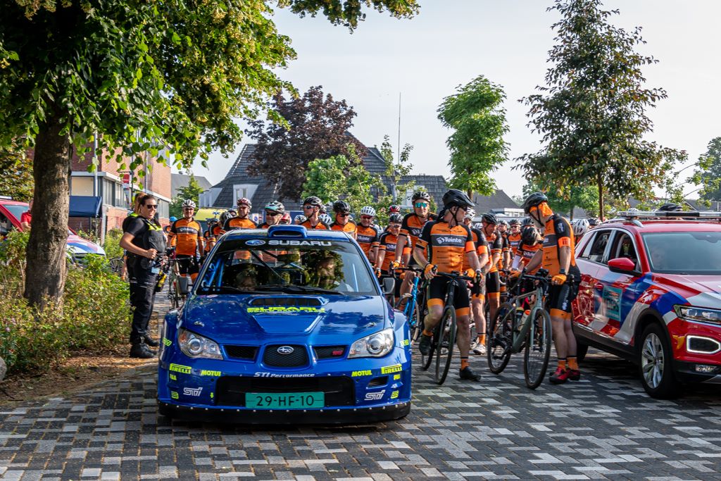 De opbrengsten van de Elastiekenkoers 2023 zullen wederom worden besteed aan lokale initiatieven binnen de Hof van Twente. Burgemeester Ellen Nauta van de Gemeente Hof van Twente gaf vanmorgen samen met de Markelose rallyrijder Erik Wevers een speciaal ‘startschot’ voor de koerstocht en sprak haar waardering uit voor de inzet van de deelnemers. Het peloton vertrok rond de klok van 8.00 uur vanaf het Kaasplein met aan kop de rallyauto met aan het stuur Erik Wevers en bijrijder Ellen Nauta richting de Markeloseberg.