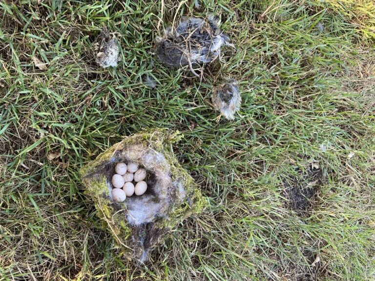 Tijdens één van de ringrondes half juni, waarbij de pas geboren jonge steenuilen worden geringd, troffen Ruud de Koning en Mirjam Bak vrijwilligers van de stichting Hofvogels wel een heel vreemde zaak aan. Op het erf waar geringd zou worden waren door de controlegroep van Hofvogels twee weken eerder twee pas geboren steenuiltjes aangetroffen. Dus was de tijd rijp om deze twee jongelingen te gaan ringen. Altijd een mooie gebeurtenis waar de kasthouders zelf ook bij aanwezig was. Zo ook hier. Maar wat er in de nestkast door één van de kastcontroleurs werd aangetroffen waren geen ringbare jonge steenuilen. Het was even stil en toen hoorden we hem teleurgesteld zeggen: ‘Er ligt veel dood spul in de nestkast maar geen jonge uilen’ Het bleek dat de nestkast vol lag met dode muizen en vogels die al geruime tijd eerder door de adulte steenuilen als prooi waren geslagen. Daarnaast werden ook nog eens niet uitgekomen eieren van het steenuilenpaar aangetroffen.