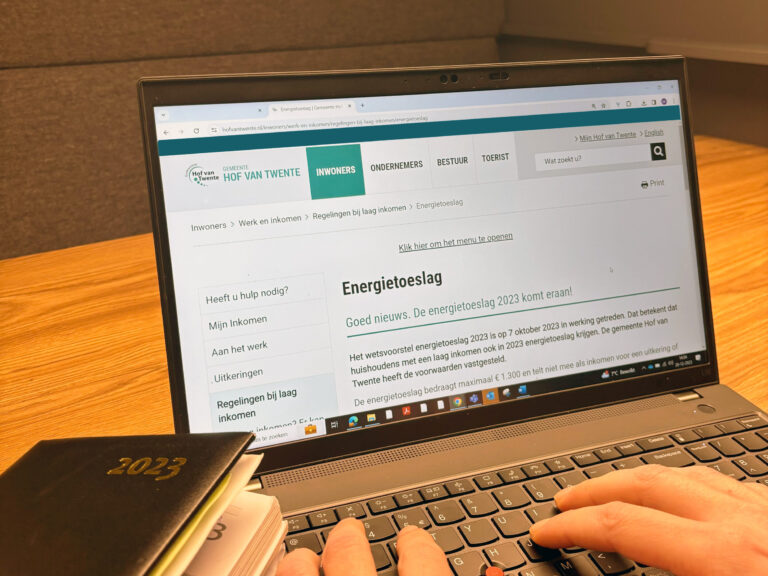 Heeft u recht op de energietoeslag, maar geen toeslag ontvangen? Vul dan op hofvantwente.nl/energietoeslag het aanvraagformulier voor de energietoeslag 2023 in. Dit kan vanaf 27 december 2023 tot 30 juni 2024. U kunt dan met terugwerkende kracht alsnog de energietoeslag ontvangen. Het gaat hierbij om huishoudens met een inkomen lager dan 120% van het geldende sociaal minimum.