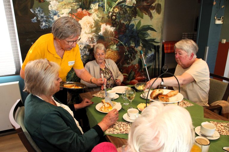 Zaterdag 12 april en zondag 13 april was het tjokvol bij Franje: over beide dagen gerekend meer dan 100 gasten over de vloer! En dat terwijl er, zoals gebruikelijk, nog meer belangstelling voor was; maar ja: vol=vol! Senioren uit de gehele Hof van Twente waren uitgenodigd om te genieten van een heerlijke paasbrunch. Nadat sommigen van huis waren opgehaald met de bekende Franjebussen en anderen zelfstandig naar het Franjegebouw aan de Kloosterlaan in Goor waren gekomen, werden de gasten buiten al verwelkomd door de paashaas die in hoogsteigen persoon aanwezig was.