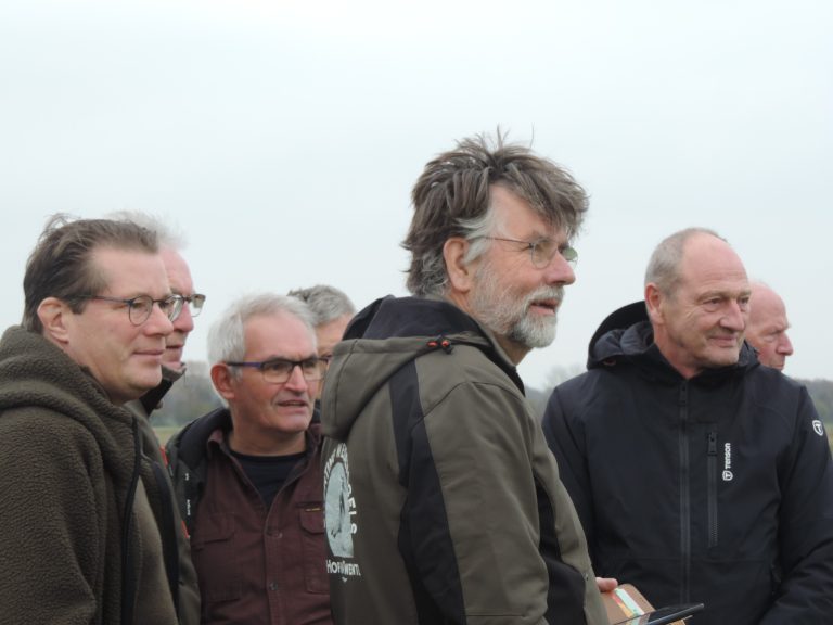 Dronepiloten, veldwerkers, coördinatoren en systeembeheerders hebben maandagavond 31 maart 2025 hun activiteiten op elkaar afgestemd bij Melkgeitenhouderij Veelers in Hengevelde. “Als het lukt 35 broedparen op 100 hectare weiland bijeen te krijgen, maakt de agrariër goede kans op een extra vergoeding”, legde voorzitter Tjeerd Ploeg van Weidevogels Hof van Twente de toehoorders uit. “De agrariër kan bijvoorbeeld een nat gedeelte van zijn land, dat niet zo efficiënt te gebruiken is voor zijn bedrijf, toch heel goed inzetten als kruidenrijk grasland zodat kuikens er voedsel en beschutting vinden. Zo wordt een weinig productief gedeelte toch in een keer interessant voor de landeigenaar als ondernemer.”