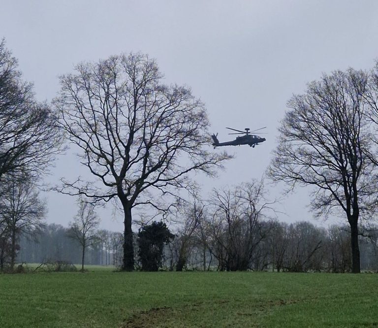 Wie de afgelopen dagen langs de Vondersweg en Wiener Benteler Scheidingsweg reed, kon niet om de indrukwekkende militaire helikopteroefeningen heen. De laagvliegende toestellen trokken veel bekijks en zorgden voor een imposant schouwspel in het buitengebied.