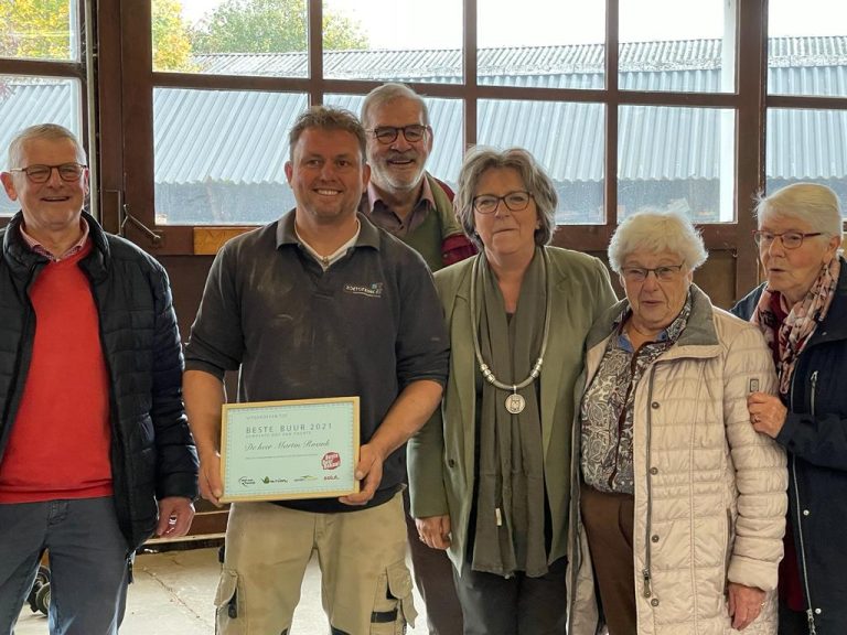 Alle inwoners uit de gemeente Hof van Twente kwamen in aanmerking voor de “Beste Buur Bokaal”. De “Beste Buur” is misschien iemand die altijd klaarstaat of is het de buur die ongemerkt veel voor de buurt doet zonder dat hij/zij in het middelpunt staat. De jury heeft alle nominaties met aandacht doorgenomen en heeft unaniem de heer Martin Rosink uit Ambt Delden gekozen tot “Beste Buur 2021”. Hij is de beste buurman die wij ons kunnen wensen, zo vertelt Leonie ons. Hij is behulpzaam naar iedereen die het nodig heeft. “Het is een man met een gouden randje” zegt een andere buurvrouw. Hij staat voor je klaar, dag en nacht. Samen met de Beste Buren van voorgaande jaren, vrienden, families en collega’s van J.A. Roetgerink & Zn. is hij blij verrast door de burgemeester mevrouw Nauta.