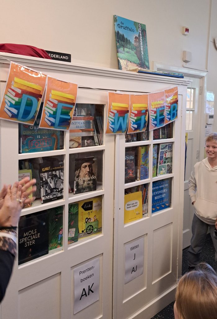 Op woensdag 1 oktober was het zover: de nieuwe schoolbieb van basisschool Wiene werd feestelijk geopend! De afgelopen maanden is de boekencollectie grondig vernieuwd en de bieb verhuisde van boven naar beneden. Er werden nieuwe kasten aangeschaft en deze zijn gevuld met mooie, nieuwe titels. De leerlingen mochten allemaal meedenken over een naam voor de vernieuwde bieb en uiteindelijk werd deze onthuld bij de opening. De naam is een samenstelling van Wiene en bieb: de Wieb, hij werd bedacht door leerling Thijs uit groep 8. Na de opening was er een gezellige boekenmarkt op het plein waar de afgeschreven boeken werden verkocht. De opbrengst van deze markt komt volledig ten goede aan de verdere uitbreiding van de bieb.