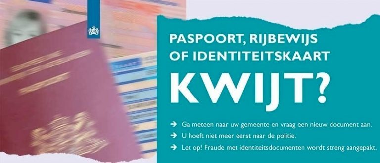 De gemeente neemt de melding en de aanvraag - ook als er sprake is van een misdrijf - in behandeling. Bij diefstal, zakkenrollerij, overval en andere misdrijven is het verstandig om ook aangifte te doen bij de politie.
