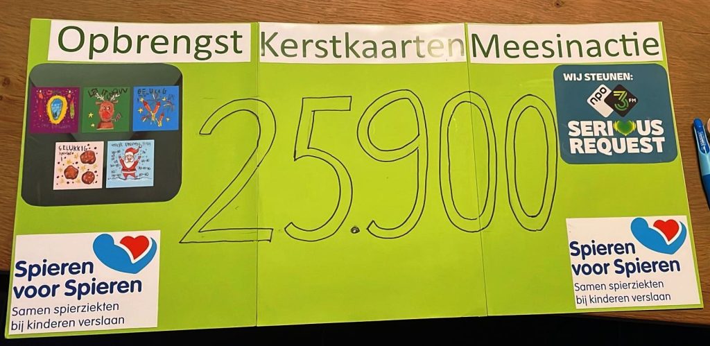 Wat een prestatie! De 7-jarige Mees Rupert, de zoon van oud Wegdammers Thijs Ruper en Ellen Hemel heeft zichzelf overtroffen. Met zijn eigen kerstkaartenactie wist hij maar liefst 25.926 euro op te halen voor het goede doel Spieren voor Spieren. Vanmiddag mocht hij, samen met zijn ouders Thijs en Ellen, de cheque overhandigen in het Glazen Huis in Den Bosch. Thijs: