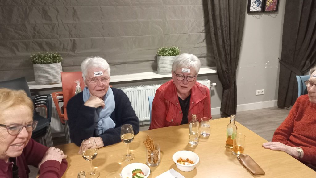 Na het officiële gedeelte werd er met een drankje en een hapje het spel “Wie/Wat ben ik” gespeeld. Iedereen was fanatiek aan het raden wat er op de sticker stond.
