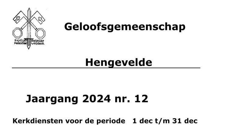 Zaterdag 7 dec 19.00 uur: Gerard Hartgerink; Wilmien Meijerink; Trui Stegeman; Overl. familie Mensink.