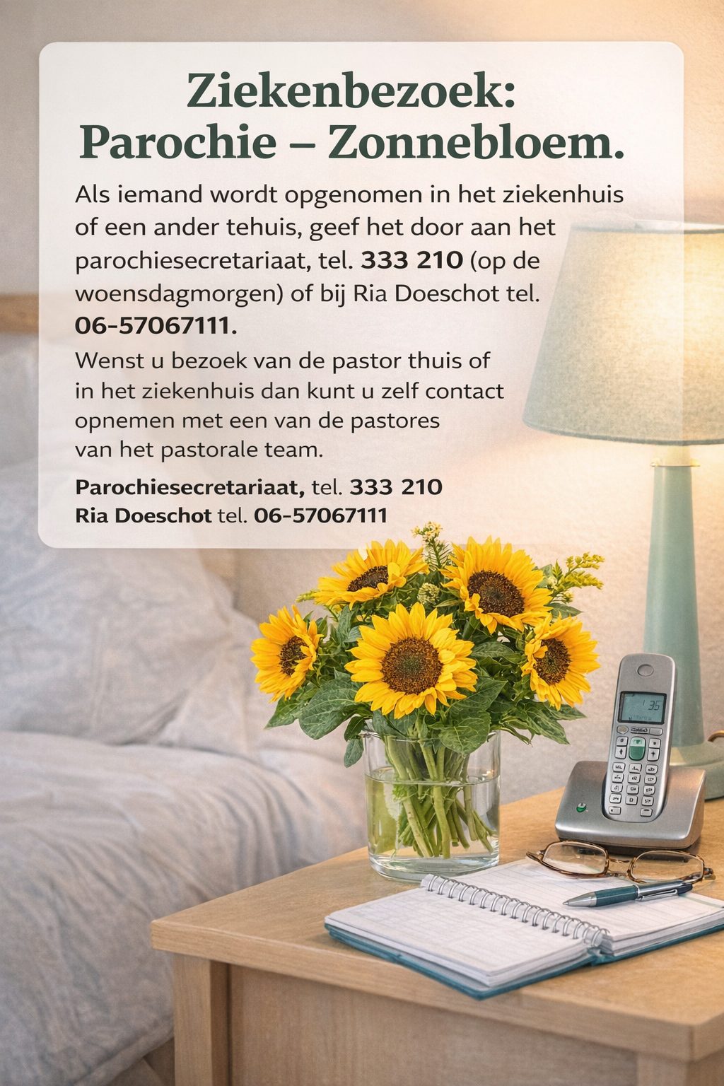 Priester (liturgie): Voor dringende pastorale zorg kunt u bellen: Pastoor J. Jansen 06–46907233 (maandag vrij), pastoor J. Keuben